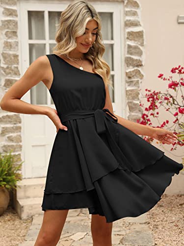 Elegant design:The Midi Dress features in one shoulder design, accentuate your delicate shoulders.Belt waist design, can freely control the most comfortable waist feeling, show your sexy curves.Ruffle flowy swing hem,keep cool in summer and show your cuteness.Chiffon material, light and soft, breathable and cool, is very suitable for summer.