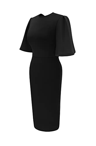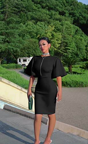 Feature:The dress is simple and stylish. Ruffled flared sleeves, short sleeves, classic elegance. The round neck and zipper on the back make it easy to put on and take off. The length of the skirt just covers your knees and will not affect your various actions.