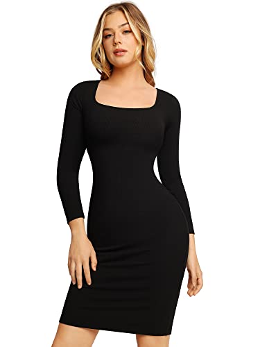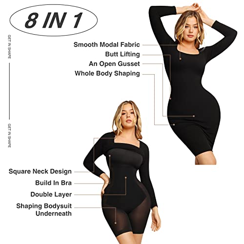 Popilush Shaper Dress Bodycon Maxi/Mini Built in Shapewear Bra 8 in 1 Women Lounge Long Sleeve Backless Dresses