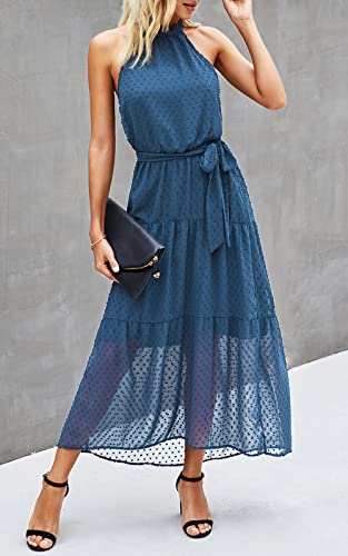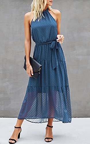 SIZE TIPS: S=US 4-6, M=US 8-10,L=US 12-14,XL=US 16-18, XXL=US 20-22 Unique Design: Halter Neck,Sleeveless,Polka Dot Print,Backless,Adjustable Strap,Ruffle Hem,Lightweight,Loose Fit,Full Length,High Elastic Waist,Belted,Tie Back,A Line Swing Dress,Floral Maxi Beach Dresses,Long Summer Dress,Pull on Closure.