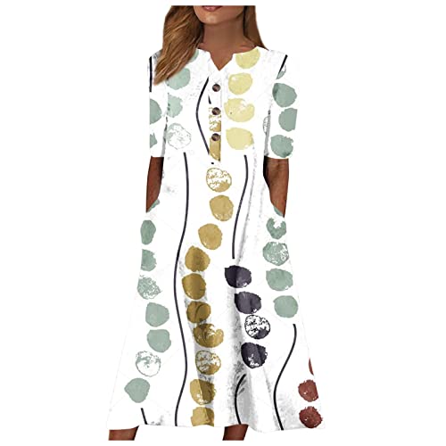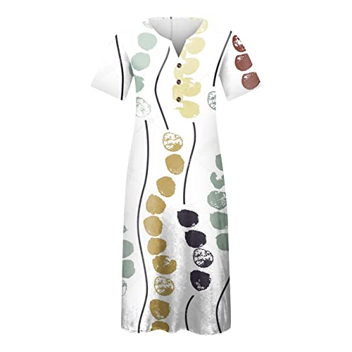 Women’s Maxi Dresses 2023 Short Sleeve Dress Polka Print Casual Dress With Pockets Summer Dresses Casual