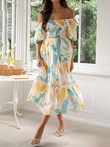 Sissyaki Women’s Summer Boho Floral Print Midi Dress Square Neck Tiered Flowy Beach Long Dress