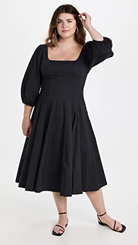 A retro-inspired dress perfect for days when you feel like dressing up, this STAUD dress features a full skirt, and is designed with a waist-defining silhouette. Wear it with strappy sandals and add some gold-tone jewels to stand out against its stark black hue.