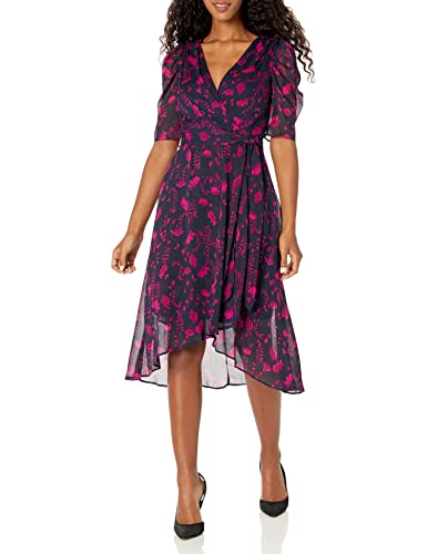 Features: maxi fit & flare, chiffon, keyhole neck, fresh clip dot long sleeve