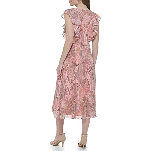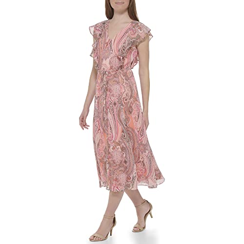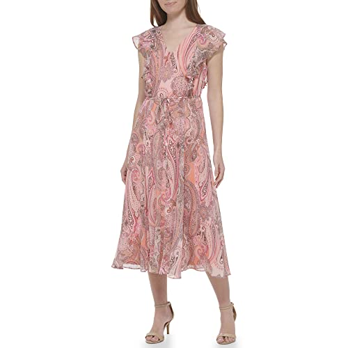 This Tommy Hilfiger womens DRESS CHIFFON is a SLEEVELESS PRINTED MIDI FIT AND FLARE
