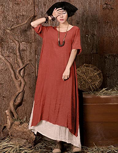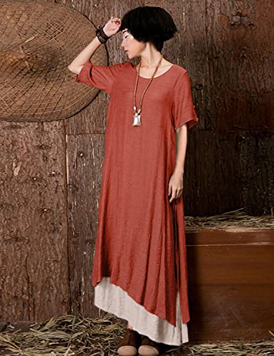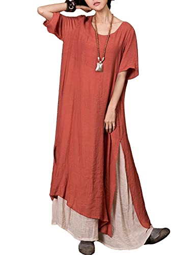 Features: Long dress for women casual hits your ankle, Color Block 2 layers with Side Slit outside looks more fashionable and slim, casual loose style getting relax feeling; Short Sleeve Dress with Classic Crew Neck;