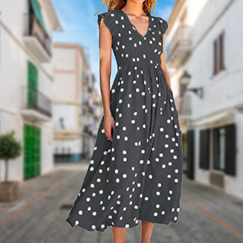 YSLEN 2023 Summer Boho Dress for Women V-Neck Floral Dress for Women Short Sleeve Dress Polka Dot Dress for Women