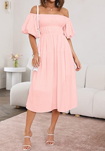 Cute elastic puff sleeve, can be off shoulder or double shoulder wear. the empire waist and flowy midi skirt can flatters your curves well, perfect to cover the tummy and legs, highlight your slender ankles.