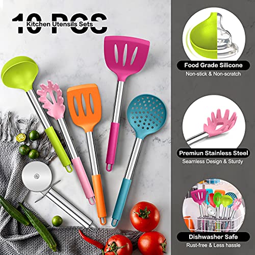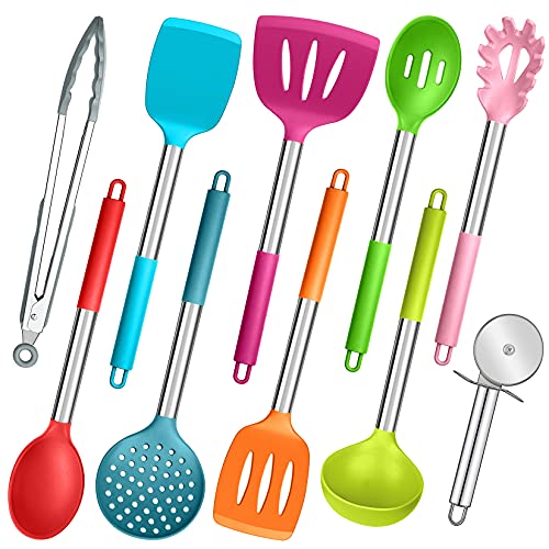 10Pcs P&P CHEF Kitchen Utensils Set(Multicolor), Heat-resistant Silicone Cooking Utensil Kit with Stainless Steel Handles, Non-scratch For Nonstick Cookware, Non-stick & Heavy Duty, Dishwasher Safe