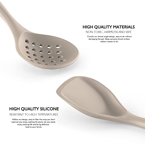 Large Silicone Cooking Utensils Set – Heat Resistant Silicone Kitchen Utensils for Cooking w Wooden Handles, Spatula Set, Kitchen Gadgets Sets for Non-Stick Cookware, BPA Free (Khaki)