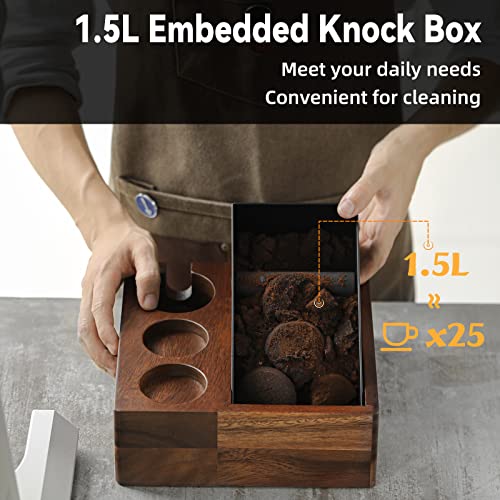 Considerate Design – 1.5L great capacity detachable knock box, meets your daily needs and convenient for cleaning, silicone knock leaver reduces knock impact and keeps safe and quiet, silicone mats all round, slip and scratch resistant.