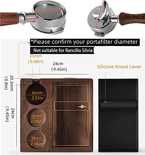 MHW-3BOMBER Espresso Knock Box 51/53/54mm Tamping Station Coffee Knock Box Wooden 4 in 1Knock Box Espresso Accessories Organizer(Natural Walnut) CH5488