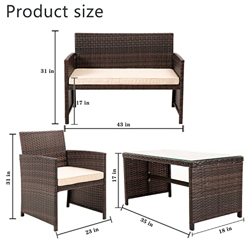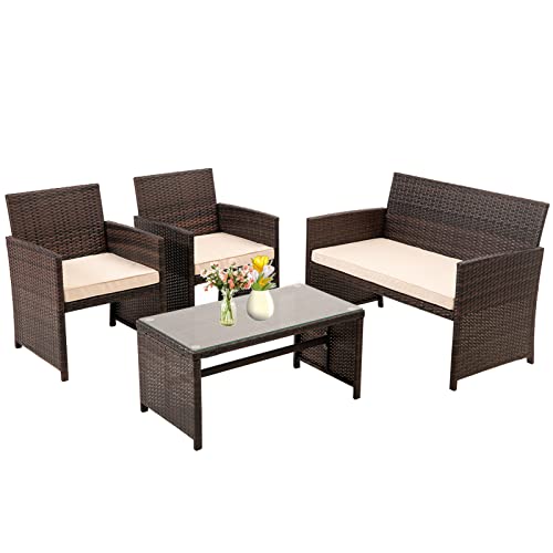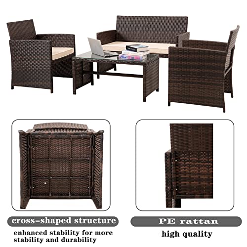 FAYEAN Patio Furniture Set 4 Pieces Outdoor Wicker Rattan Chairs Patio Sofa for Garden Porch Backyard Lawn Pool Khaki