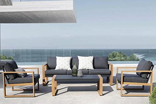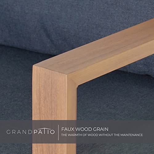 Grand patio Outdoor 4 Pieces Duisburg Aluminum Conversation Sets,Faux Wood Grain Aluminum Metal Sofa with Removable Cushion and Coffee Table for Garden Backyard Balcony