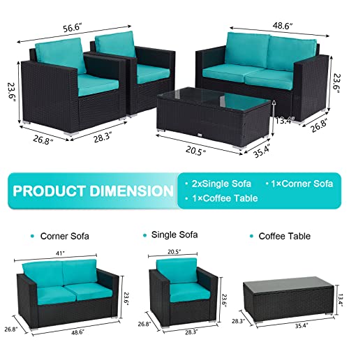 Free Combination-The 4pcs patio wicker furniture set includes 1 corner sofa + 2 single sofas + 1 storage box table. It can be freely combined according to your needs or used together with other rattan products in the store.