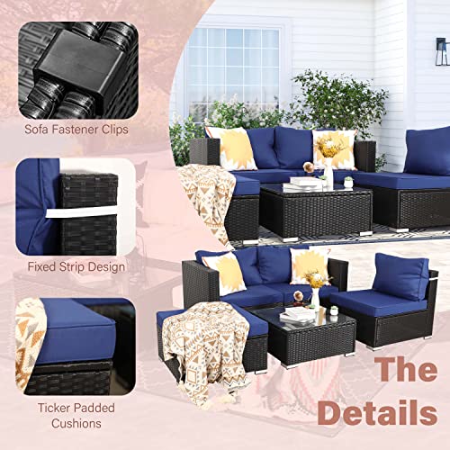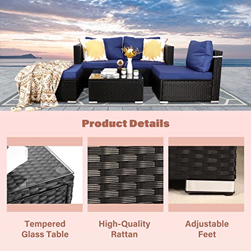 PAOLFOX 5 Piece Wicker Patio Furniture Sets, Patio Sectional Furniture Set,Patio Conversation Sets,Outdoor Sectional Furniture,Patio Couch,Outside Sofa(Black/Blue)