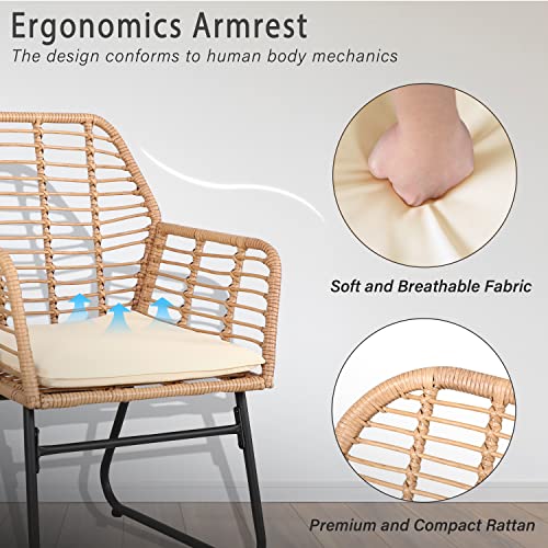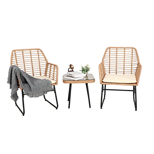 PAOLFOX Patio Furniture Set 3 Piece,Wicker Patio Chairs,3 Piece Patio Set, Outdoor Furniture,Porch Deck Furniture, Rattan Wicker Furniture, Beige