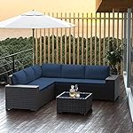 RTDTD Outdoor Patio Furniture Set, 6 Pieces Outdoor Furniture All Weather Patio Sectional Sofa PE Wicker Modular Conversation Sets with Coffee Table,5 Chairs & Seat Clips (Dark Blue)