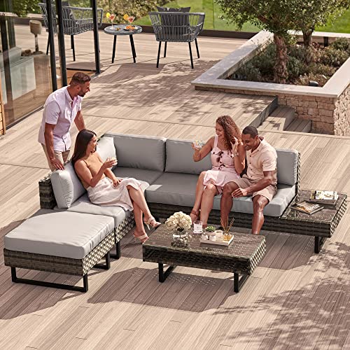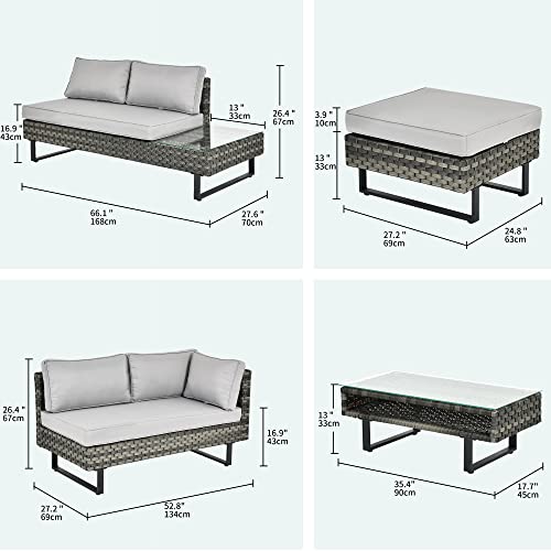 YITAHOME 4 Pieces Patio Furniture Set, PE Rattan Sectional L-Shaped Sofa for Patio Backyard Poolside Porch, Wicker Conversation Set with Coffee Table & Cushions, Detachable Lounger – Grey