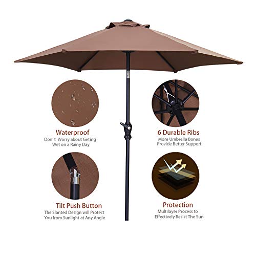 HYD-Parts 7.5FT Patio Umbrella Outdoor Table Umbrella,Market Umbrella with Push Button Tilt and Crank for Garden, Lawn, Deck, Backyard & Pool (Coffee)