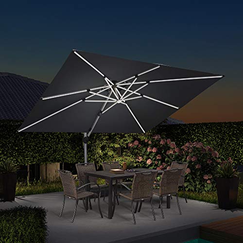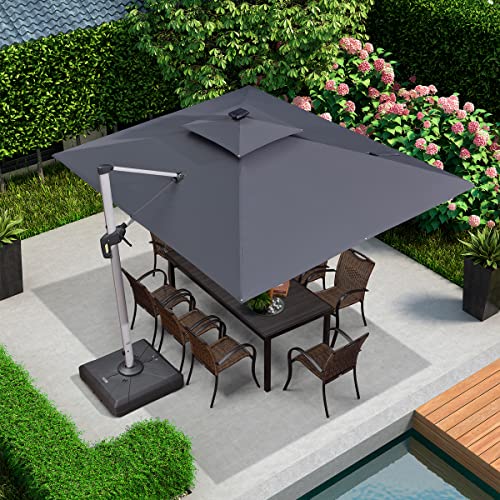 PURPLE LEAF 9′ X 12′ Double Top Deluxe Solar Powered LED Rectangle Patio Umbrella Offset Hanging Umbrella Outdoor Market Umbrella Garden Umbrella, Grey