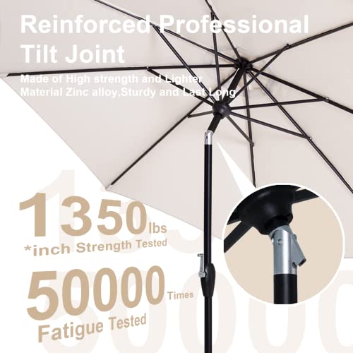 Tempera Striped Patio Umbrellas Outdoor Table Market Umbrellas with Crank & Pust Button Tilt|Auto-Tilt, 8 Steel Ribs, High Color-Fastness Canopy