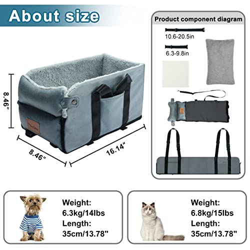 Sakgos Dog Car Seat Pet Supplies, Portable Console Dog Car Seat for Small Pets, Dog Booster Seats for Small Dogs, Pet Car Seat for Small Pets Up 12lbs Safety Tethers Perfect Car Seat for Dogs Cats
