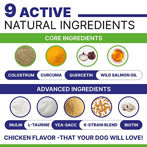 Allergy Relief Dog Chews – Itchy Skin Relief w/Omega 3 + Probiotics + Colostrum – Seasonal Allergies – Anti-Itch Treats – Skin & Coat + Immune Supplement – Made in USA – Chicken Flavor – 120 Ct