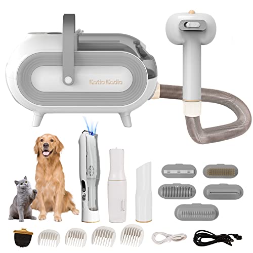 Katio Kadio Pet Hair Grooming Vacuum M2 – Multifunctional Dog Grooming Tools Electric Clipper Vacuum 10Kpa Suction, 2L Large Capacity Dustbin, Low Noise Dogs and Cats, Slim Design (Grey)