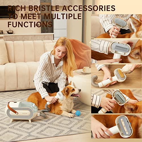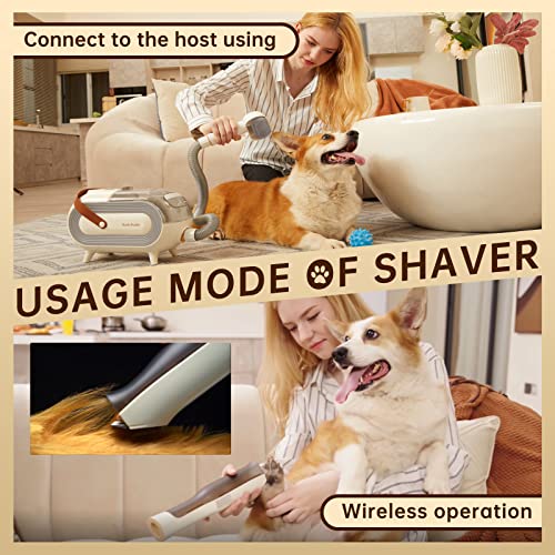 {Compact and Exquisite Accessories} The appearance adopts a tote-style design, easy to use and store without taking up space, with a fashionable contrasting color scheme. The rich accessory design includes 5 patented multifunctional combs: detangling comb, pin comb, blade comb, scraping comb, and bristle comb, which are simple and compact, easy to replace and operate. With a stretchable hose and an independent electric clipper vacuum cleaner, it solves the problem of pet hair cleaning in one go.