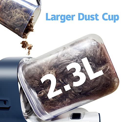 ?【2.3L Larger Dust Cup】➖ The larger jar storage capacity can reduce the number of times you dump your pet hair. This is fantastic because you can brush her inside without fur flying everywhere, instead it goes directly in the canister. It is also very simple to disassemble and clean.