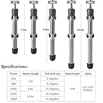 HITOP 25W 50W 100W 200W 300W Adjustable Aquarium Heater, Submersible Fish Tank Heater Thermostat with Suction Cup (50W)