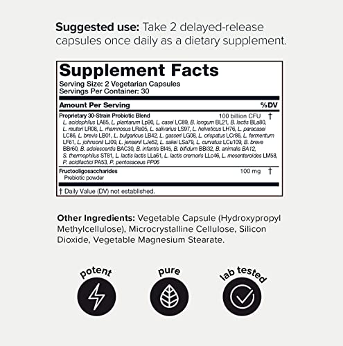 Third-Party Tested Strains – Factors such as place of origin, storage conditions and transit conditions can lead to decreased potency and even risk of bacterial contamination for any probiotics (including specific probiotics for women and probiotics for men). That is why our 30 strains are fully tested and verified for every batch.