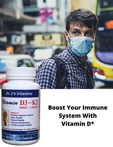 Dr. Z’s Vitamins – Vitamin D3 K2 – Vitamin D3 5000 IU + 100 MCG Vitamin K2 MK-7 Per Capsule – K2 D3 Vitamin Supplement – Vitamin K2 D3 – VIT D3K2 – Vitamin D and K – Immune Support (120 Caps)