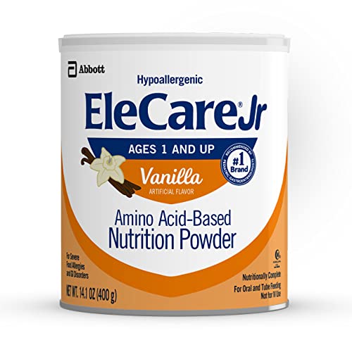EleCare Jr is a hypoallergenic, nutritionally complete amino acid-based nutrition powder for children who cannot tolerate intact or hydrolyzed protein. With 100% free amino acids as the protein source, EleCare Jr is the clear choice to support growth and development in the children who need it most. EleCare Jr helps improve symptoms of severe food allergies and various gastrointestinal (GI) conditions. Available in Vanilla, Banana, Chocolate, and Unflavored.