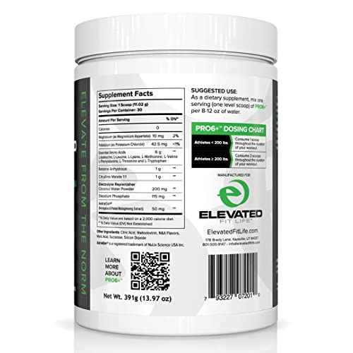 Elevated PRO6+ Essential Amino Acids Supplement – BCAAs Amino Acids Pre Workout Powder for Men and Women, EAAs to Build Lean Muscle & Reduce Post Workout Fatigue, 30 Servings (Lime Sherbet)