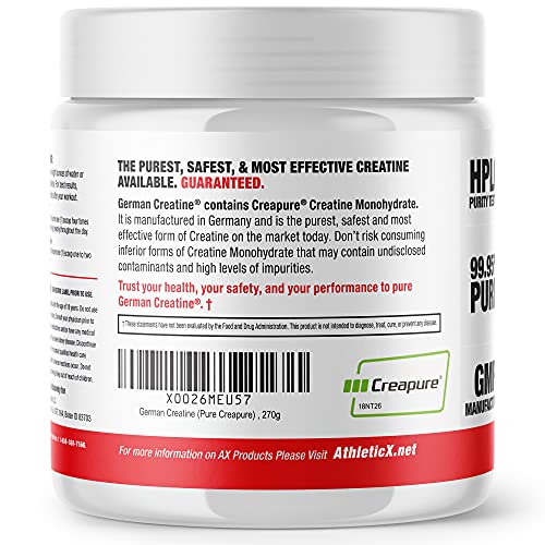German Creatine (Pure Creapure, The Purest Creatine Monohydrate Available – 270g (54 Servings) | Micronized Creatine from Germany