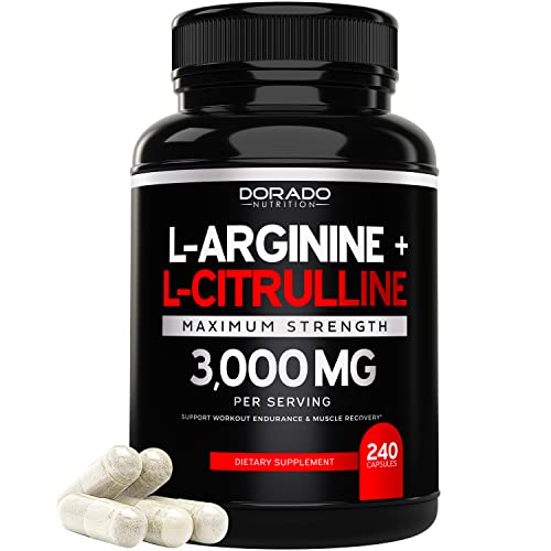 L Arginine L Citrulline 3000mg Supplement (240 Capsules) Nitric Oxide Pills for Men – Stamina, Endurance, Performance for Workouts – NO Supplements for Men – Gluten Free, Non-GMO, Vegan Capsules