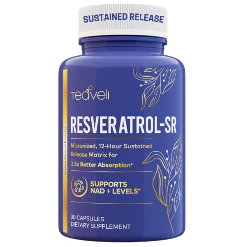 Trans Resveratrol Supplement – Superior Absorption with 12-Hour Sustained Release, Micronized Pure Resveratrol Powder – NAD Supplement for Healthy Aging – Vegan Resveratrol Nutritional Capsules