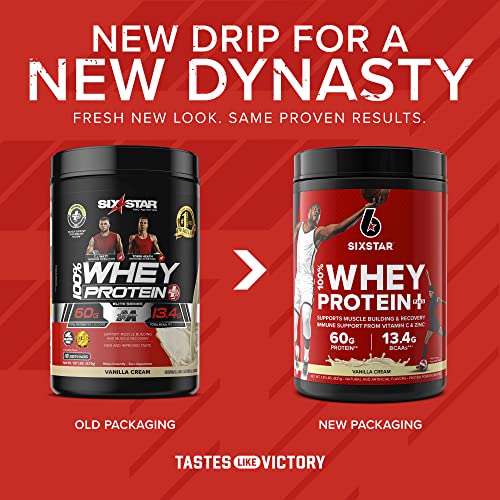 Six Star Whey Protein Powder Whey Protein Plus | Whey Protein Isolate & Peptides | Lean Protein Powder for Muscle Gain | Muscle Builder for Men & Women | Vanilla Cream, 1.8 lbs (Package Varies)