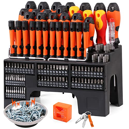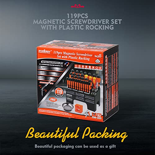 HORUSDY 119-Piece Magnetic Screwdriver Set with Plastic Racking, Includs Precision Screwdriver, Insulated screwdriver and Bit set, Tools for Men Tools Gift