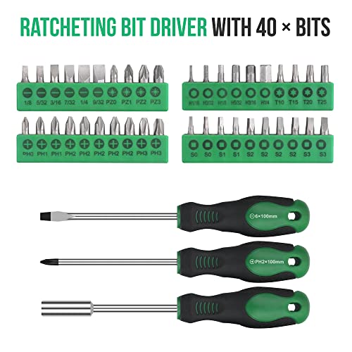 Package Includes cordless drill driver, slip joint pliers, groove joint pliers, adjustable wrench, long nose pliers, magnetic screwdriver holder, screwdriver bits, utility knife, tape measure. The tool kit bag is Perfect for DIY or as a gift to friend