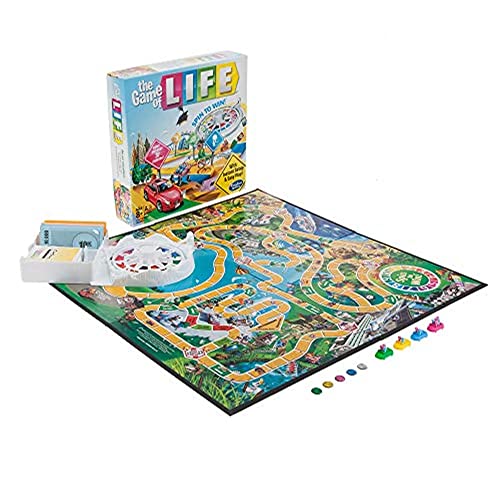 Who will be a video game designer, a secret Agent, or perhaps an inventor? In the game of life game players can make their own exciting choices As they move through the twists and turns of life. This edition includes 31 Career cards to choose from. Move the car token around the gameboard from start to retirement, and experience unexpected surprises, family, vacations, and other milestones of life. Go to College, choose a career, take the family path, have kids, take a ski trip or see what happens when unexpected twists change the game until retirement. Who’s headed for wealth and fortune? Play, spin to win and find out! Once everyone reaches the end of the game at retirement, everyone pays their debts and adds up their wealth. The player with the most money at the end of the game wins! Hasbro Gaming and all related terms are trademarks of Hasbro.
