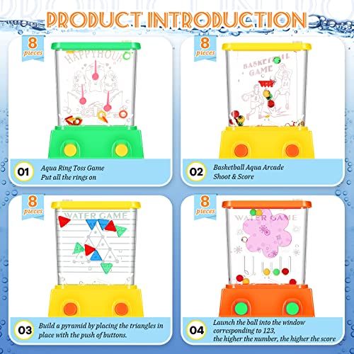 Package Content: the package contains 32 mini water arcade games with 4 different styles, without water, and they allow you to open the plug on the product, add water to start the game; The bright colors and enough quantity can fulfill your needs for playing and sharing with your buddies