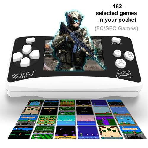 E-MODS GAMING Handheld Game Console Built-in 162 FC Video Games – Retro Kids Video Games with 2.5 Inch Screen Support AV/TV Output, Handheld Game Console for Age 3-12(Black)