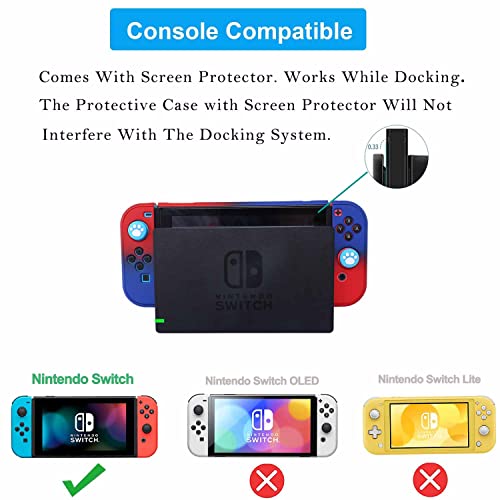 PERFECT MATCH: It’s easy to get on and off. Designed with specially placed cut-outs, supports access to all parts of the switch and allows for access to all buttons. The Switch protective case with screen protector will not interfere with the docking system, also compatiable with original kickstand
