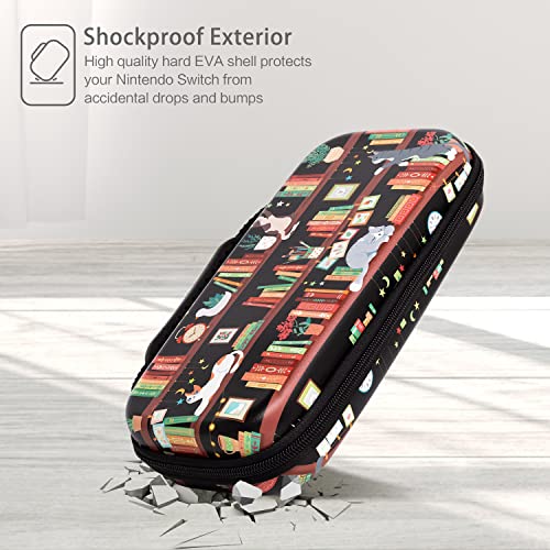 Nintendo Switch Case OLED Model 2021, CutebriCase Carry Case for Nintendo Switch for Boy Girls-Travel Storage Hard Shell Cover with 16 Game Card Slot for Switch Console Joy-Con & Accessories,Bookshelf Cat