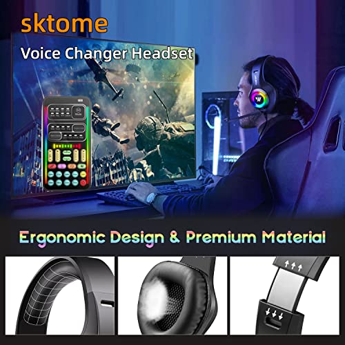 Gaming Voice Changer Headset with Mic, Cool LED Light Over-Ear Headphones with Volume Control, Noise Reduction Voice Changer Gaming Headset for PS4/PS5/Xbox One/PC/Phone/Laptops 【Multifunctional Effects】 【Driver-free Surround Sound】 【Easy to Carry】 【Humandized Design】 【Enjoy Great Compatibility】